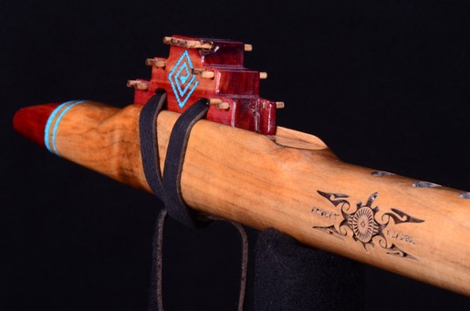 In 2006 Robert Mirabal invited my wife and I to join his family for the New Year celebration on the Taos Pueblo. it was an event etched forever into my retina. The bon fires made from pitch pine logs where at least 20 foot flames out side each pueblo in the dead of the night. Julia, my wife, and I were the only non-Taos Pueblo Indian people at the celebration. This was a rare event. The families went from pueblo to pueblo singing and dancing with pillow bag held open to accept gifts of oranges, tooth brushes, hair care and soaps, candy, and apples and the occasional dollar bills. Each family gathered bags of goodies as they went from one family dwelling to another. It was a joyous celebration of life. Robert Mirabal and his brother Patrick Shenandoah sang the Butterfly Song and dance to it. This was the first time I had heard the Butterfly Song. I fell in love with this song. It latter was recorded onto the CD In The Blood. To this day I get goose bumps when I hear this song. sometimes when I am in the wilds like, Arches, I'll belt this song out at the top of my lungs just to hear it ring in my ears and off the rock walls, just like I am here in my office right now in the middle of the night at 2:52am. It was cold there in Taos that winter. A lot colder than it is here now. in fact I remember it being below zero. I remember it being minus 6. But perhaps that is just me now sitting here at my warm desk now remembering the good ole times. Regardless, it was cold and we happy. The next day we were drinking some hot chocolate and talking about flutes. When I lived in Washington I had told Robert that I wanted to make a flute from a wood from the Pueblo. At the time he had looked at me kind of funny like. In Washington, we had a lot of trees, Taos, not so many. But right in the middle of the Pueblo there are some lovely Cotton Wood trees. Many people do not care to work with Cotton Wood because it tends to be softer and such. However, I have a way of stabilizing the wood that allows me to use the wood and I can trust it to last a long time. As it turned out Robert had an enormous Cotton Wood tree in his back yard that was no longer producing leaves and had not for many years. So he and I harvested this tree. This flute is made from that tree. And the story of cutting the tree down is worth hearing too.